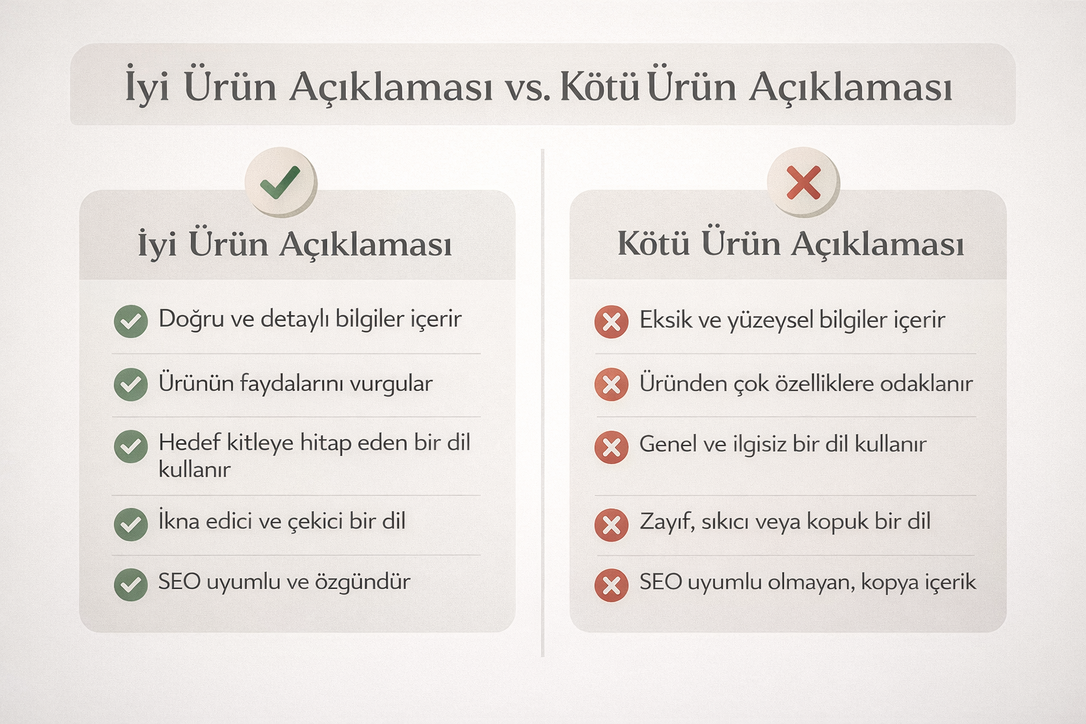 Kısacası ürün açıklamaları; sadece ürünü anlatan metinler değil, satışları etkileyen stratejik içerikler olarak öne çıkar.